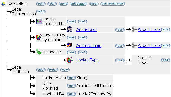 For each set or lookup values, there will be an instance of LookupType, and for each value in the set, there will be an instance of LookupItem, connected to its set via the "includes" relationship. Refer to the section on Configuring and Using Lookup Property Types for a worked example of defining a custom lookup type.