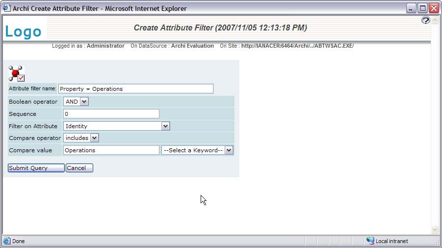Use this dialogue to specify an Attribute (also referred to as Properties) on which to filter. The drop down list contains all the legal properties defined in the repository, irrespective of which node types they are on.