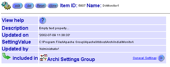 It doesn't matter what you call the setting as long as it is not a setting already being used by EVA Netmodeler. In this example we have created a setting called "DirMonitor1" which looks like this:
